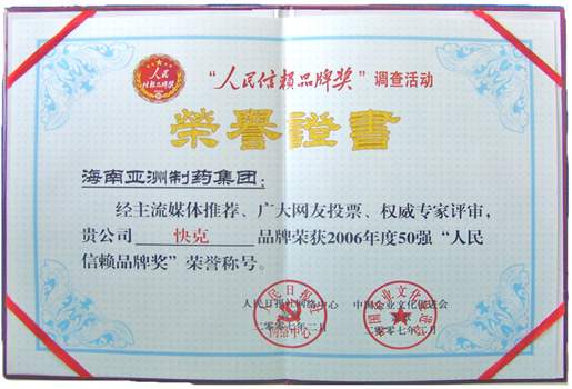 2006人民信賴品牌獎(jiǎng)