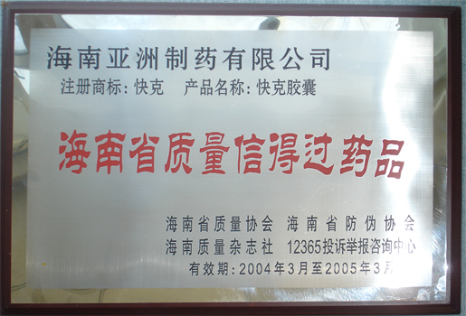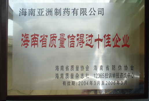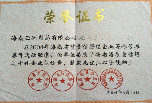 04年海南省質(zhì)量信得過(guò)十佳企業(yè)