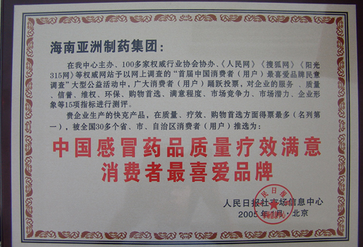 中國(guó)感冒藥消費(fèi)者最喜愛(ài)品牌