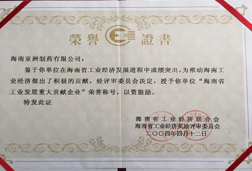 04年海南省工業(yè)發(fā)展重大貢獻(xiàn)企業(yè)