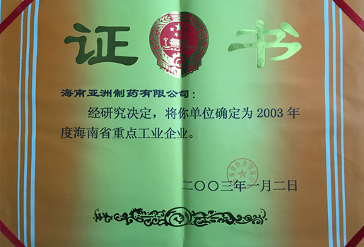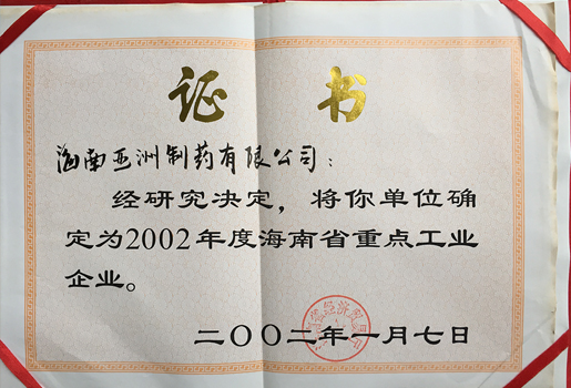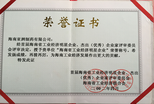 02年海南省工業(yè)經(jīng)濟(jì)明星企業(yè)