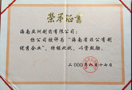 00年海南省非公有制優(yōu)秀企業(yè)