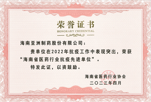 榮譽(yù)證書(shū)-省醫(yī)藥行業(yè)抗議先進(jìn)單位(2022)