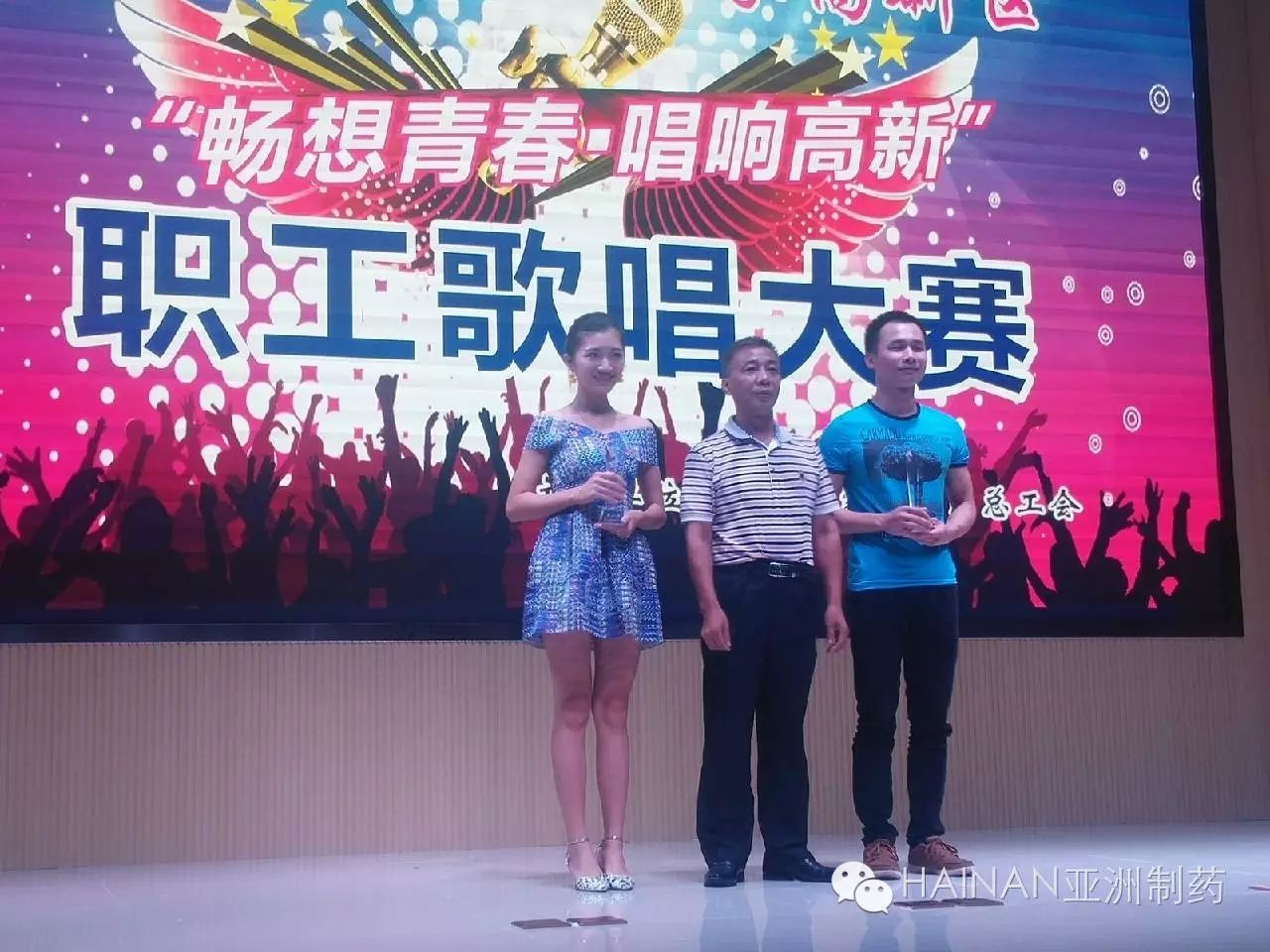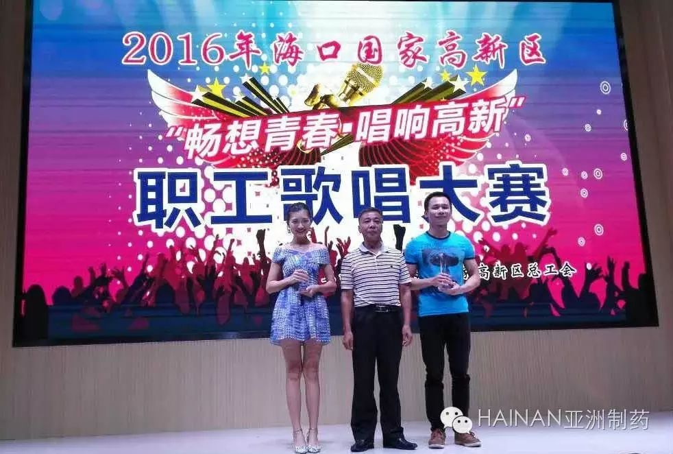 2016年9月23日星期五晚上七點(diǎn)半,周詩凌代表海南亞洲制藥參加??趪腋咝聟^(qū)“唱響青春,唱響高薪”職工歌唱大賽總決賽。在此之前,共有來自??趪腋咝聟^(qū)、碧凱藥業(yè)、京潤珍珠等近十五家企業(yè)26名選手參加了復(fù)賽,經(jīng)過嚴(yán)苛海選,15名優(yōu)秀的選手成功晉級(jí),亞洲制藥周詩凌一曲《男人哭吧哭吧不是罪》以第一名的好成績挺進(jìn)決賽。